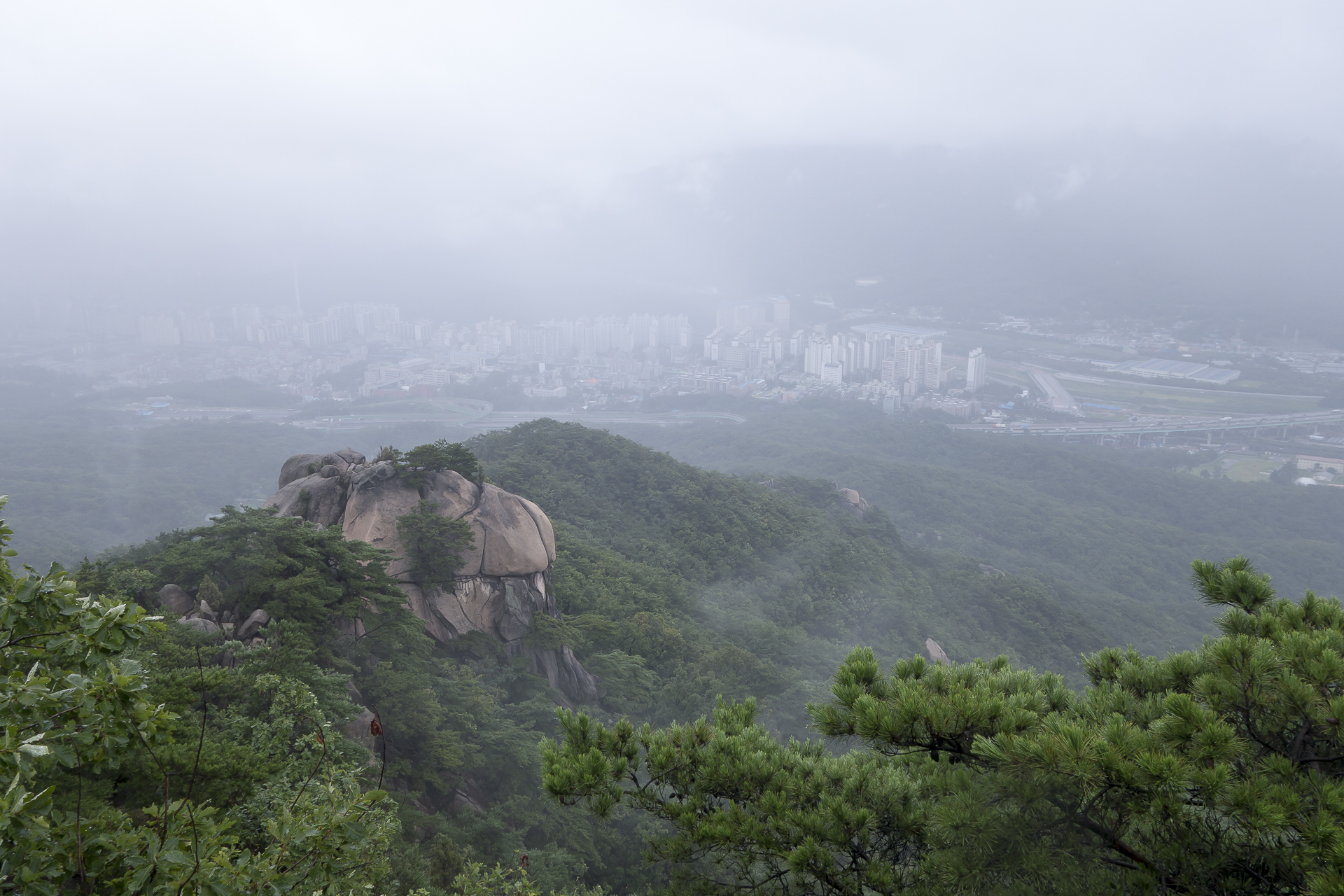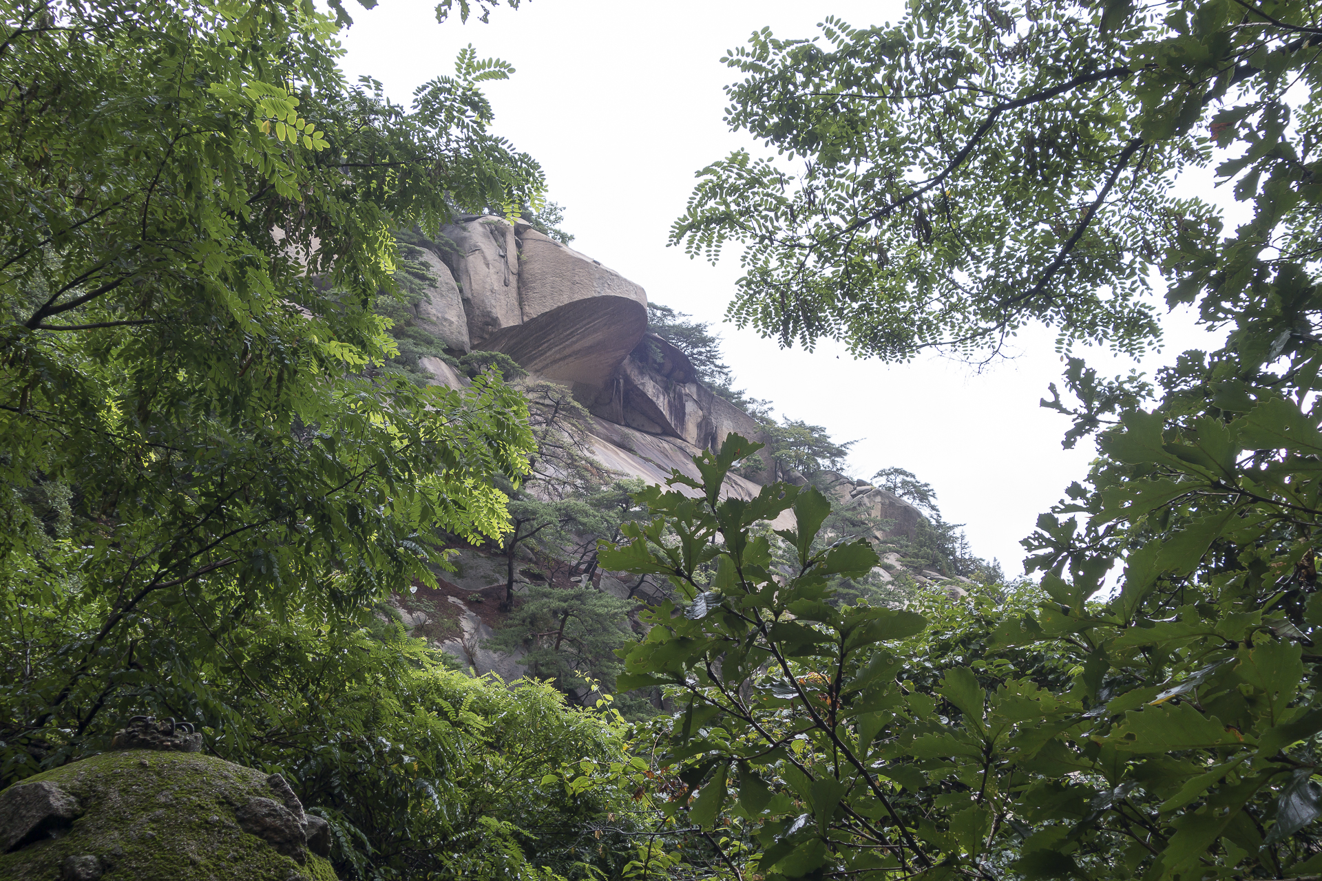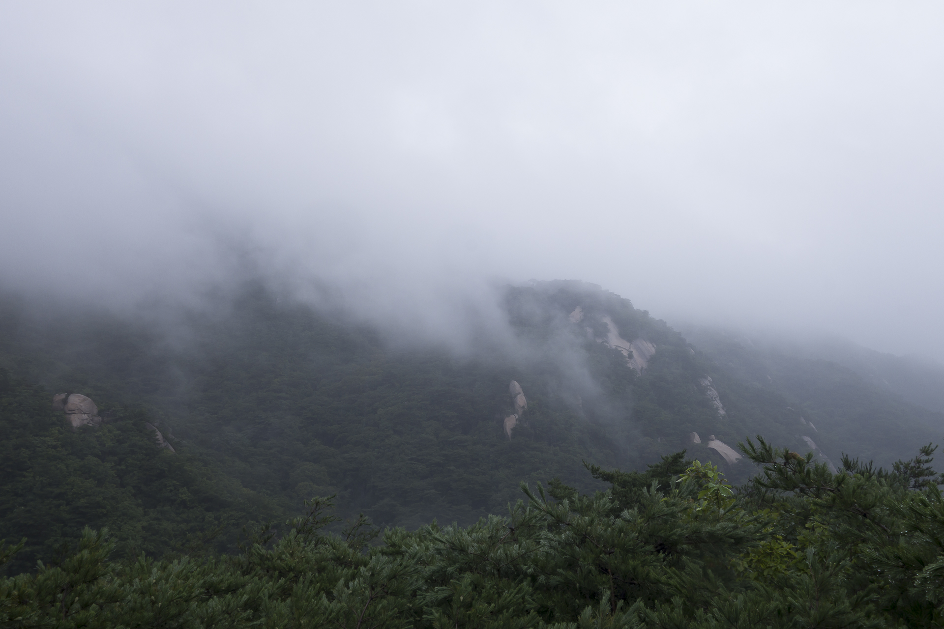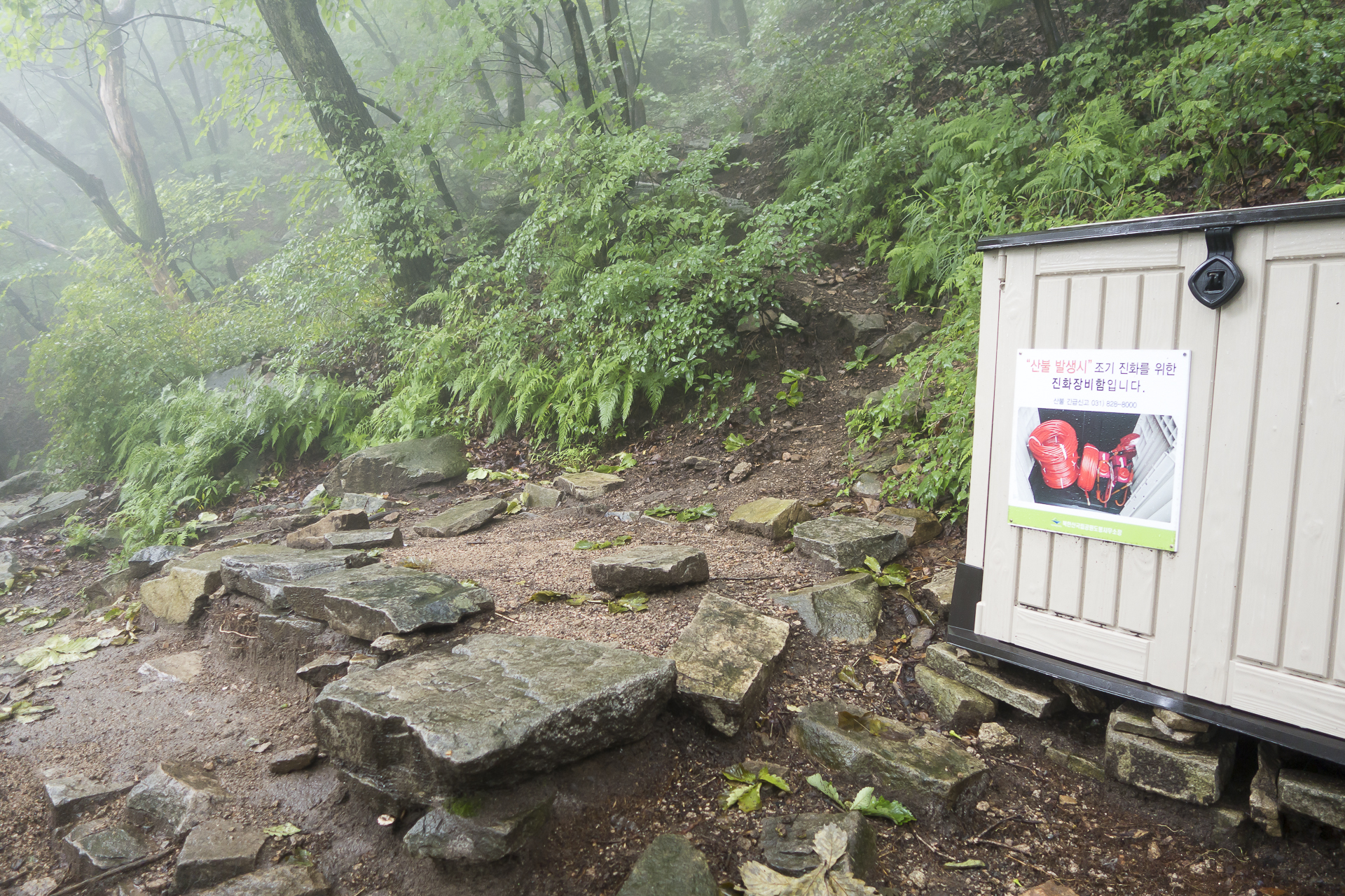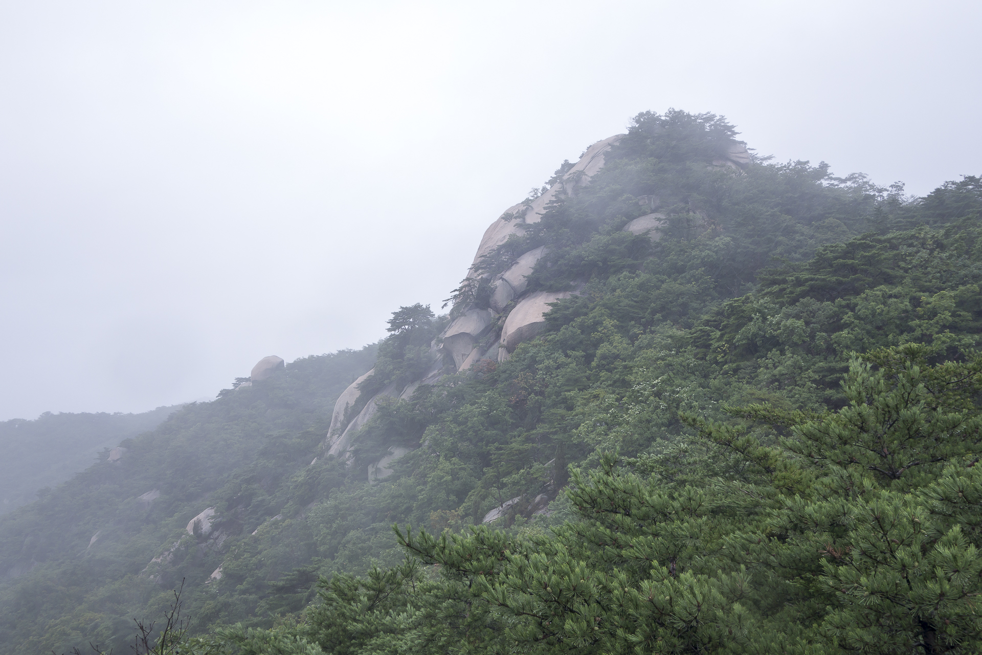 고도를 낮출수록 비는 점점 가늘어지디가 망월사로 오르는 삼거리쯤에서는 아예 비가 그쳐주며 조금씩 더워집니다.