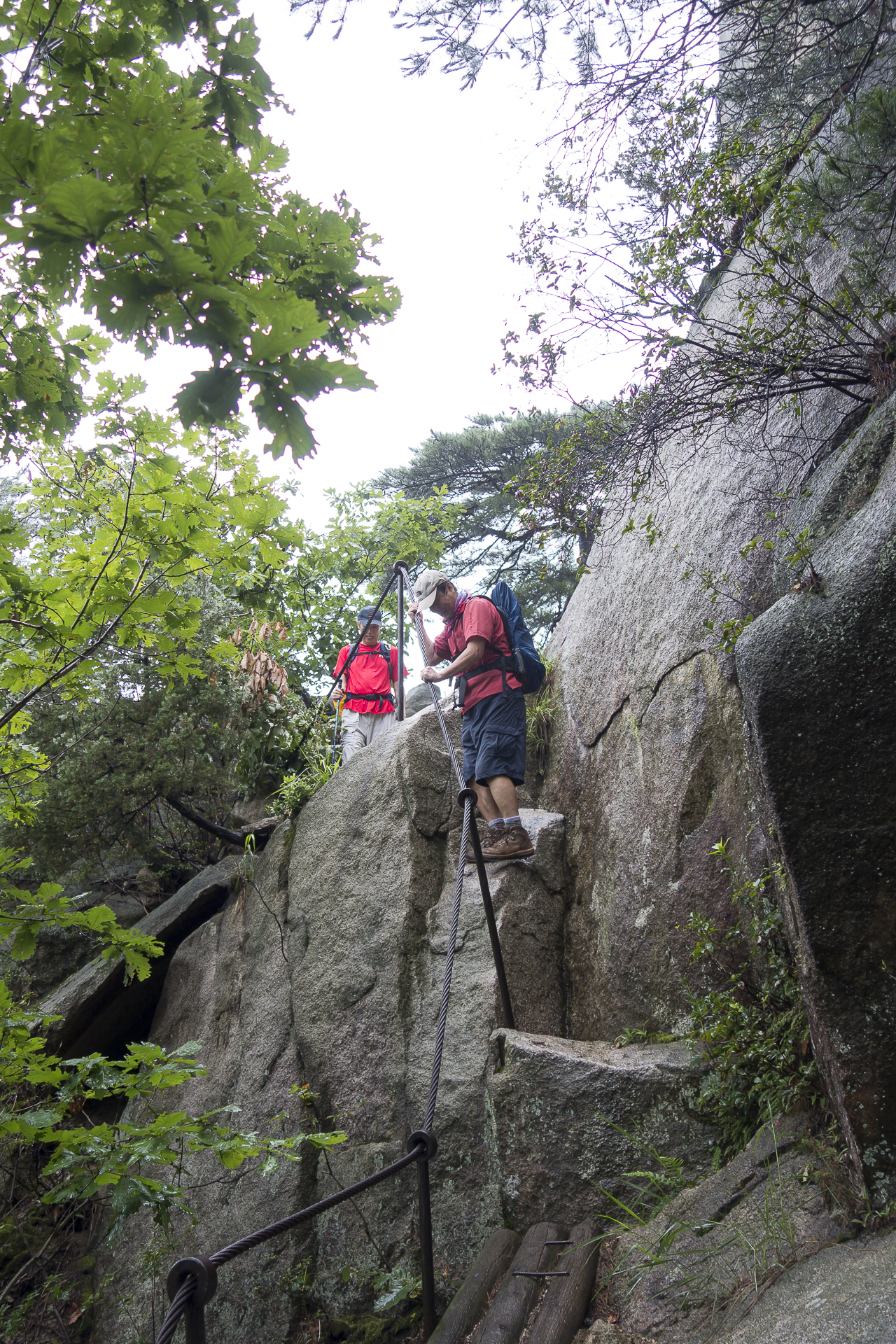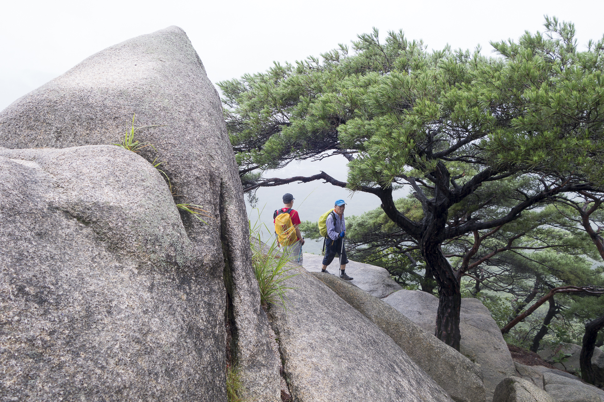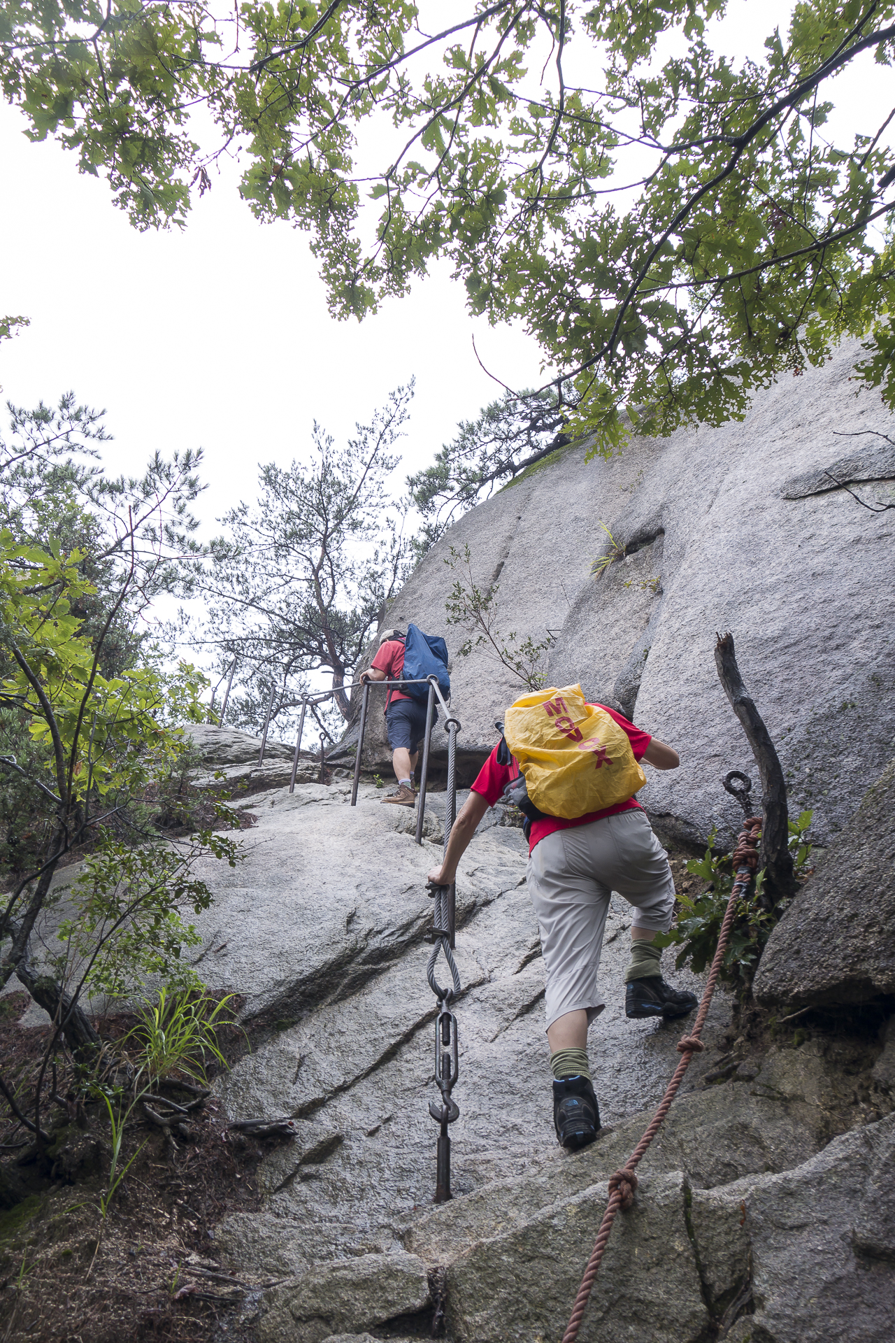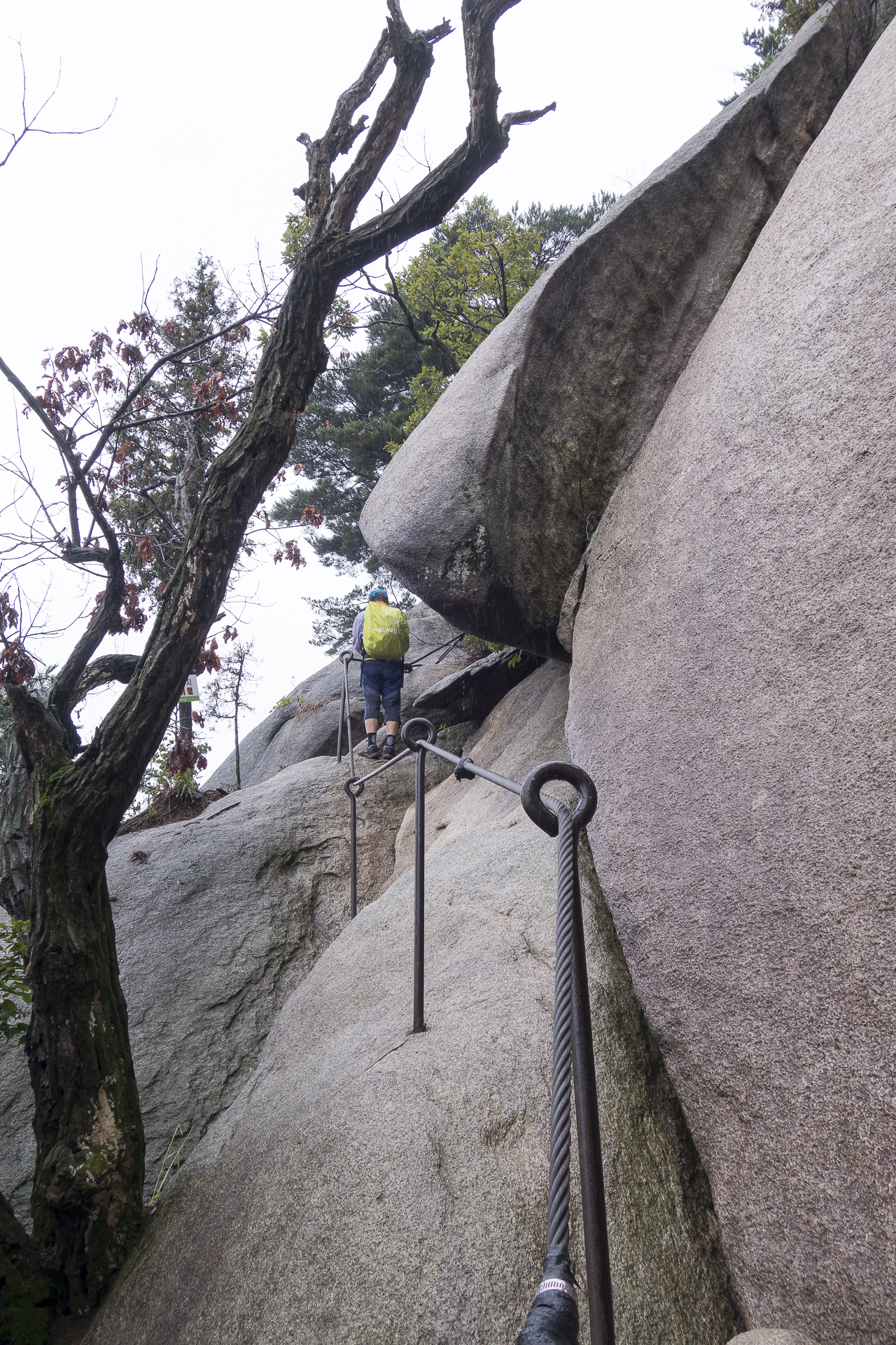 하지만 대여섯개의 암릉 로프 구간을 지나서 포대정상이 가까워질수록 빗방울은 굵어지고 기온은 떨어져 선선해집니다.