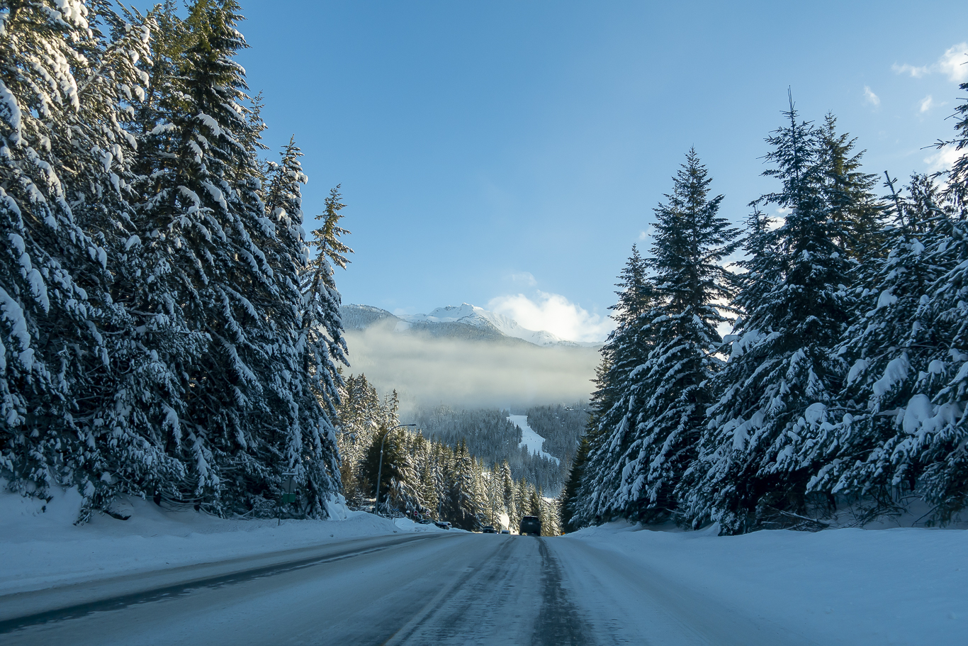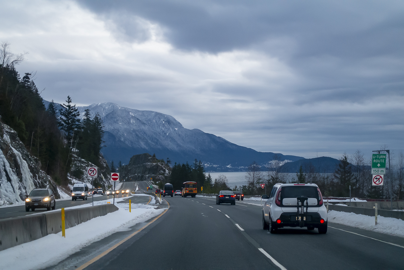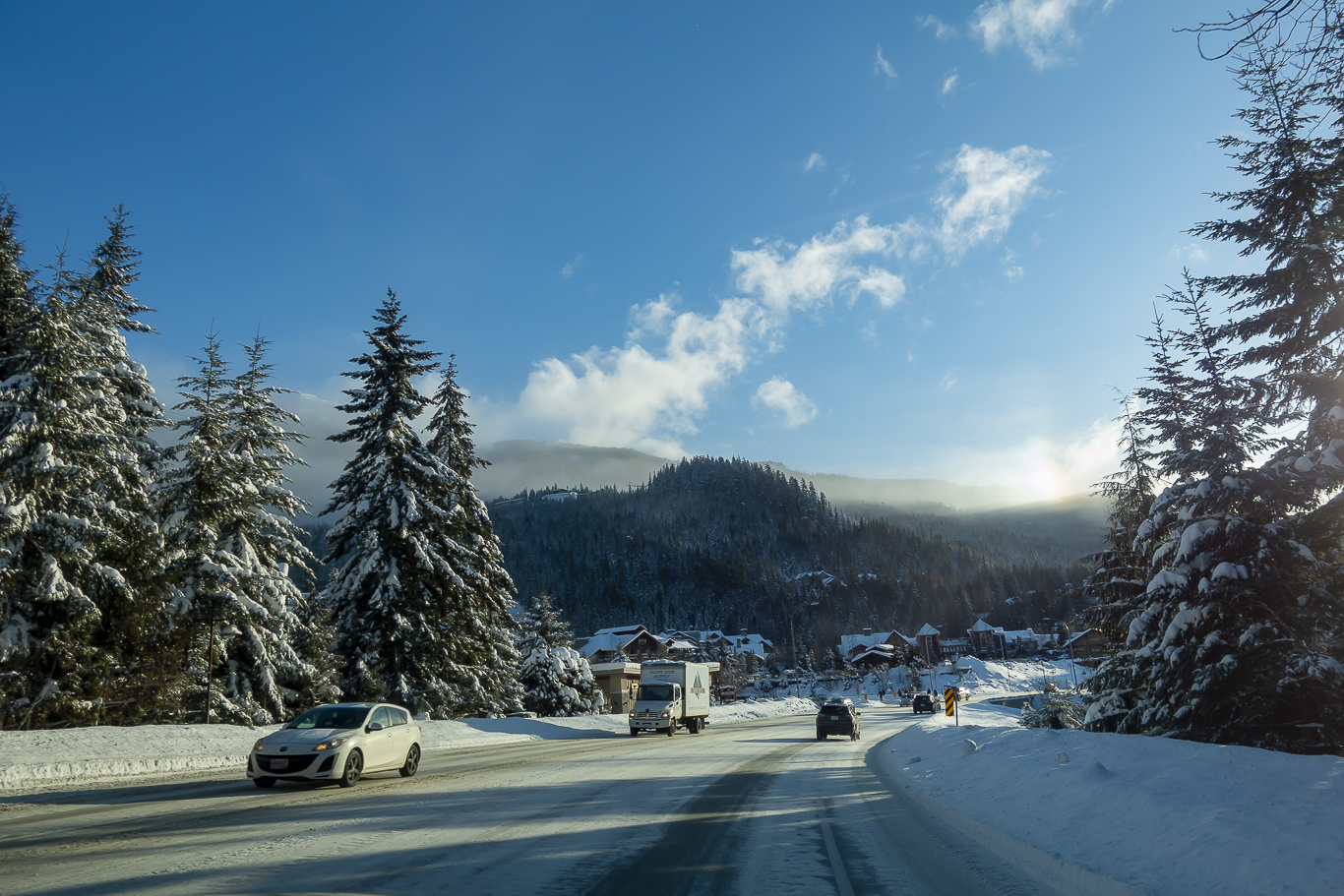 휘슬러 빌리지 입구에서 고속도로 진입을 기다리는 중.