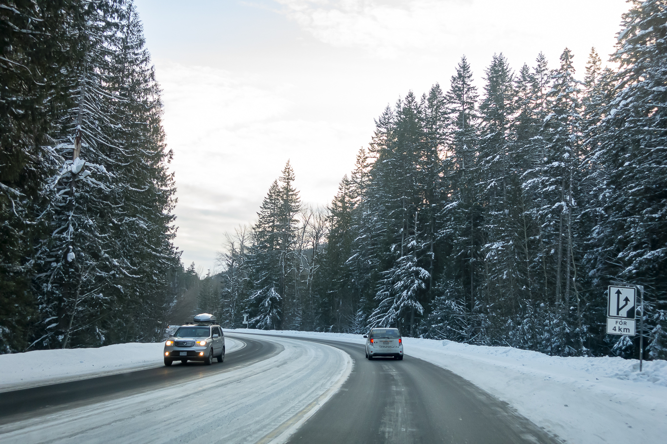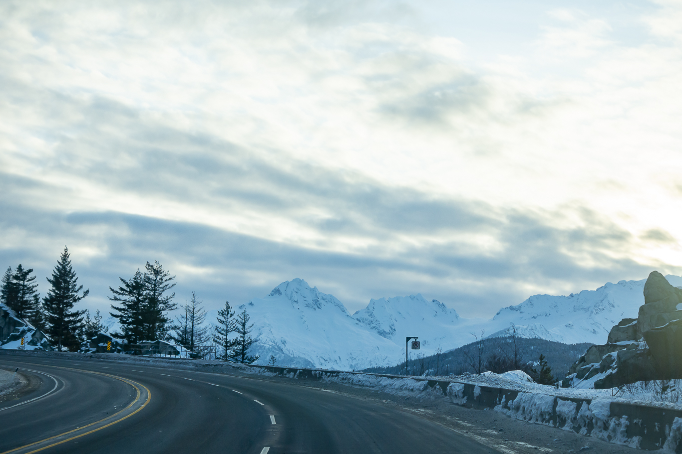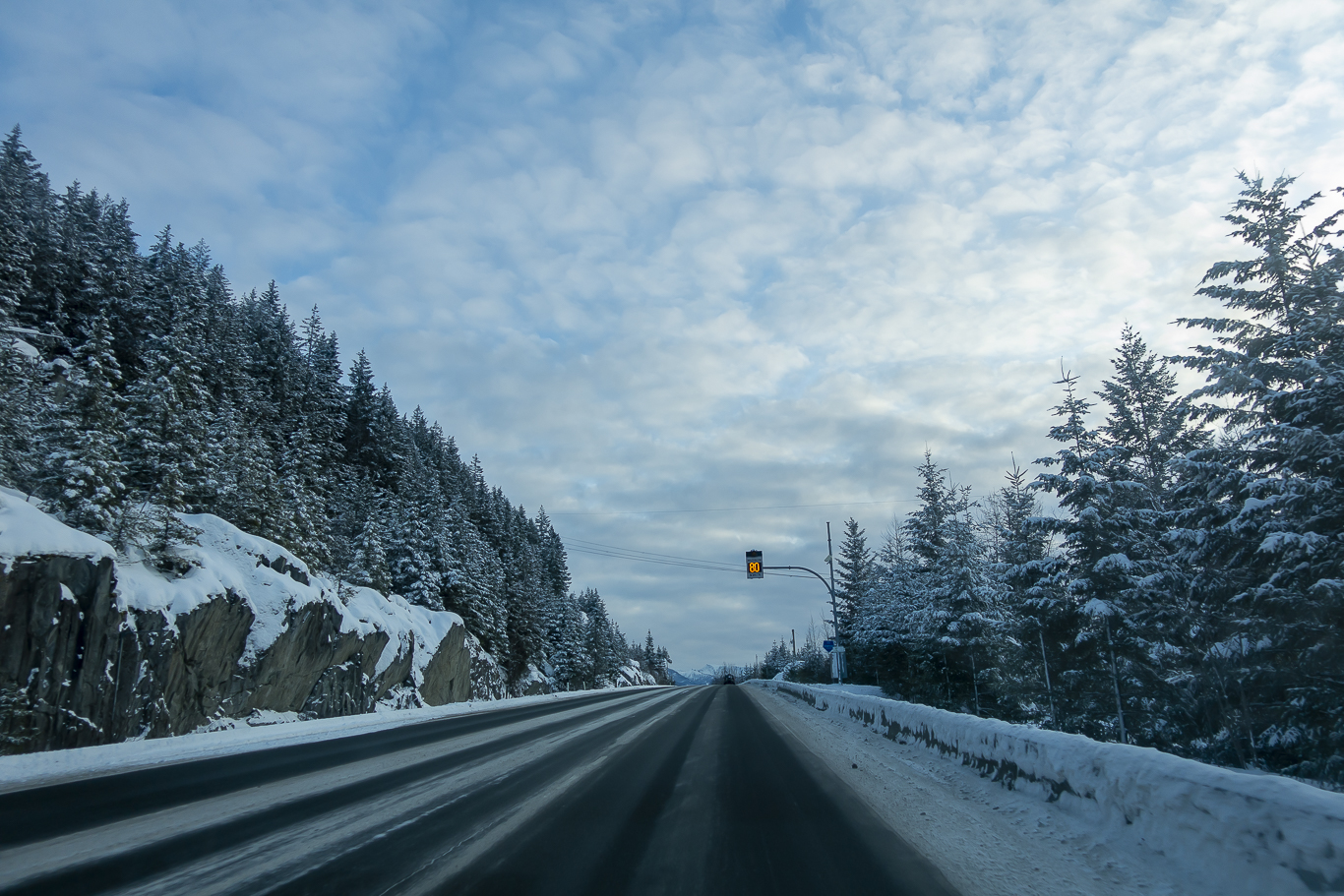 휘슬러 빌리지 입구에서 고속도로 진입을 기다리는 중.