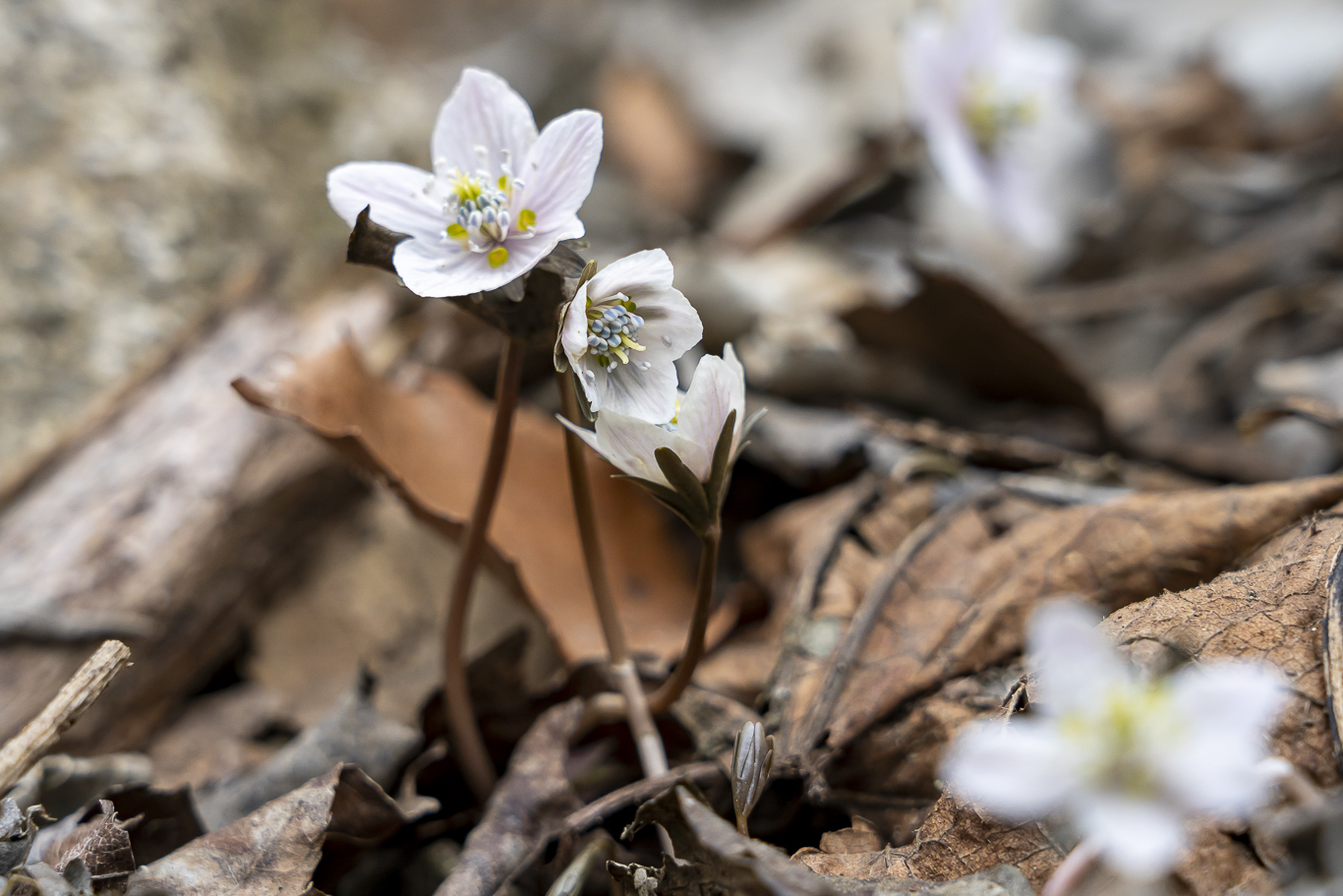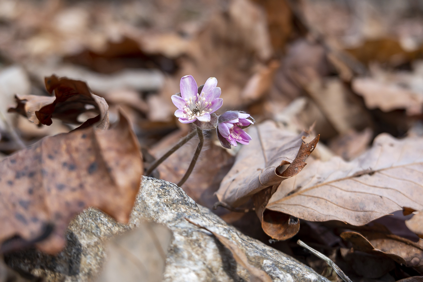 다른 탐사자들은 어딘지 다른 군락지를 찾있는지 만개하여 화려한 노루귀 꽃들을 보여 주는데.